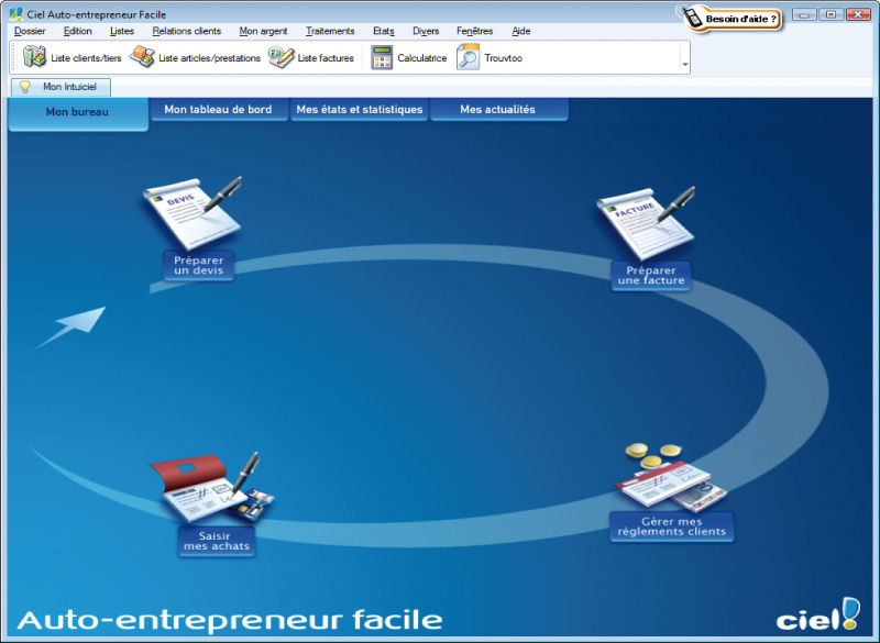 Petite découverte de la semaine, le logiciel "Ciel! Auto Entrepreneur" ! Il est issu de la société Ciel qui a déjà fait ses preuves sur un bon nombre de logiciels de comptabilité.La particularité de cette version "Auto Entreprise" est qu'elle est gratuite ! Et oui ! Et pour une boîte comme Ciel! c'est assez rare pour souligner.